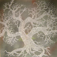 Double Tree, 2006-09, Ink & Acrylic on Arches, 18" x 18"